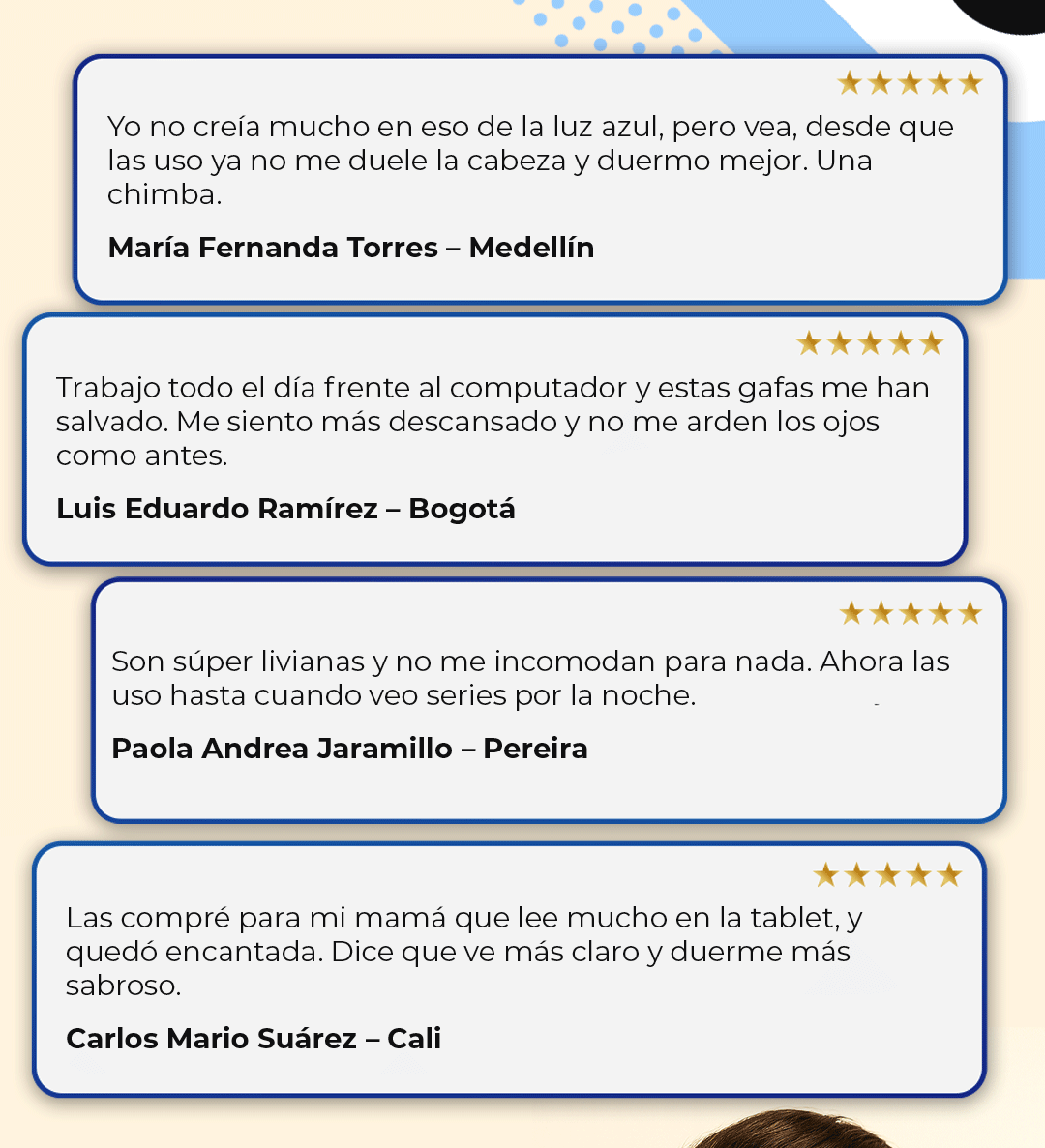 Soy estudiante y paso pegada al portátil, antes me dolía horrible la cabeza. Con estas gafas me ha bajado ese dolor, además me han dicho que me quedan lindas 😅