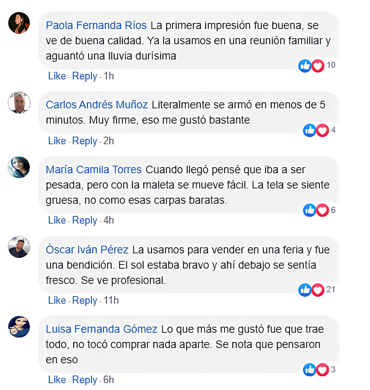 Me encantó la carpa. Fácil de montar y resistente. Dudé mucho en comprarla, pero valió la pena