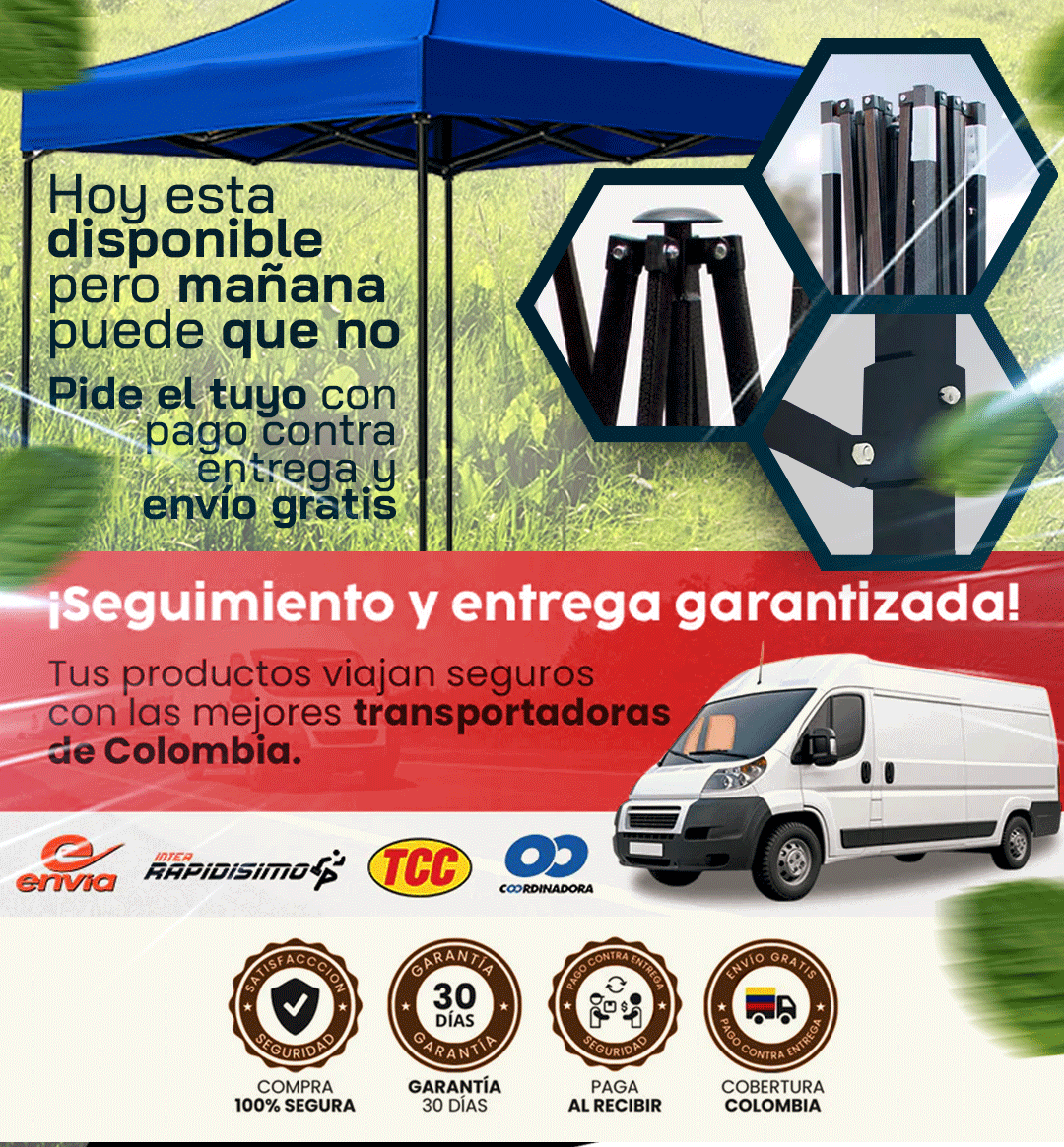 Sí, la carpa tiene garantía. Si presenta algún problema de fábrica, te ayudamos con el cambio sin complicaciones.