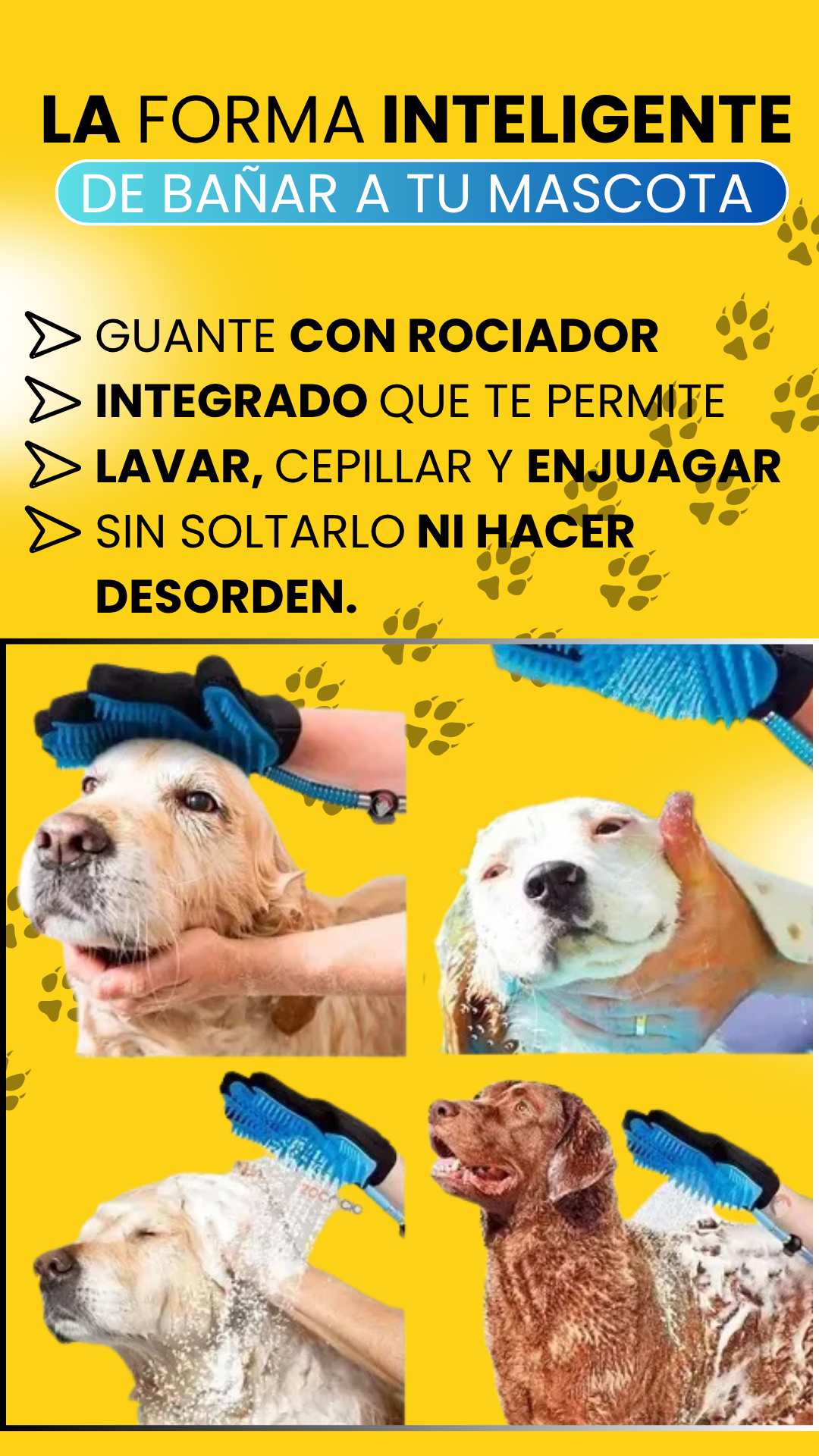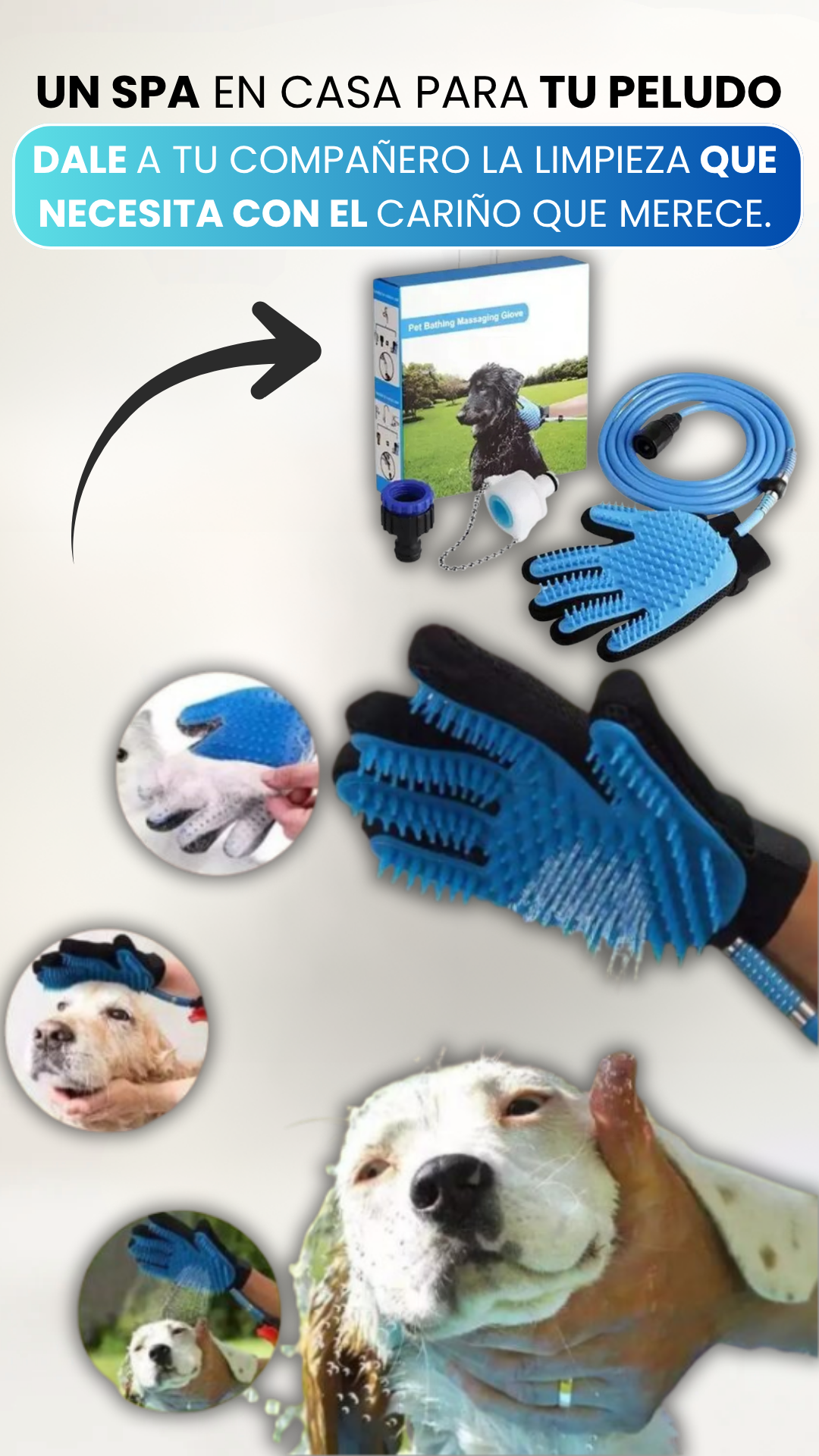 Guante de Ducha para Mascotas 🐶 Limpieza profunda sin salpicar ni ensuciar tu casa